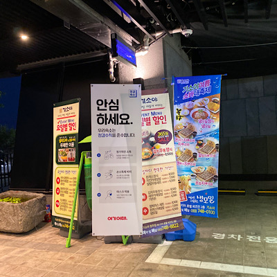 호텔 안 2층에 기소야라고 식당이 있는데.. 홍보하는 간판이 이렇게 널려 있었어요.