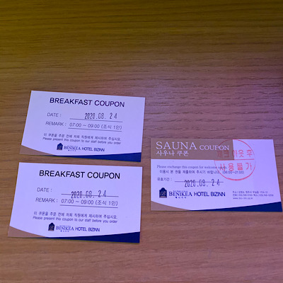 저희는 조식 포함 숙소 2박을 잡아서 조식 식권을 받았습니다.